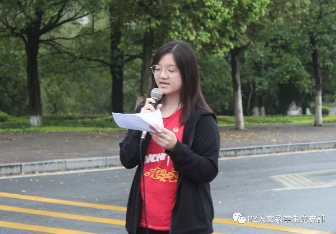 人文系学生党支部的党员、预备党员和入党积极分子早早地到来,怀揣着满腔热血来到升旗台前,迎接国旗冉冉升起的那一刻。“全体肃立!升国旗,奏国歌!”全体同学庄严肃立,国歌奏响,五星红旗徐徐升起。国旗随风飘扬,天虽然蒙蒙亮,但国旗却为这阴天增添了几分色彩。