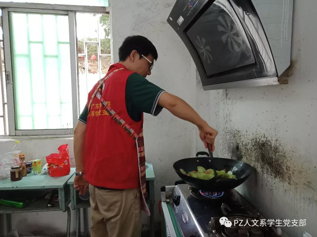 后勤组的成员们早早地起了床,给队员们用心地准备了早餐。彭老师中午来为我们下厨。