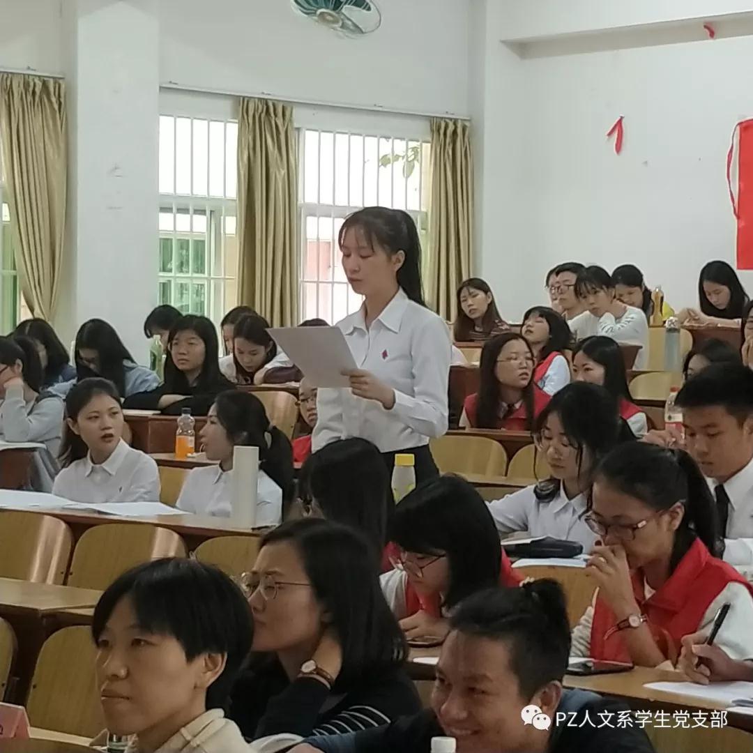 2018年12月5日中午12:30,人文系学生党支部在2107教室顺利召开了通表大会。出席本次大会的老师有人文系党总支副书记肖宾主任、党总支组织委员黄玫老师、党总支宣传委员宋可老师、学生党支部书记谢俊芳老师、老师培养人尹音娜老师、王欣然老师、吕坤鹏老师、人文系辅导员陈彦霖老师,以及曾小燕同志等4位学生培养人。本次支部大会到会人员有韩颖聪、麦琼慧等7名学生正式党员,许洁微、朱玲等15名学生预备党员,陈丽婷、李思慧等92名入党积极分子,共计126人。