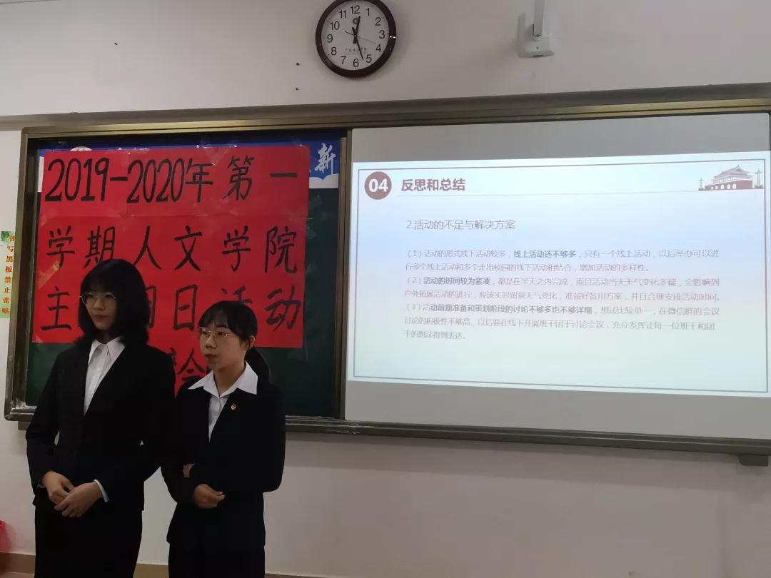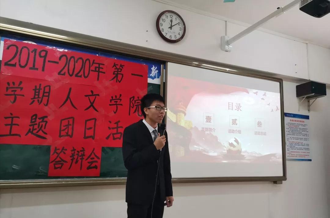 2019年11月13日中午,人文学院2019-2020学年第一学期主题团日活动答辩会于2101教室举行。本次答辩会秉承公平公正公开的原则,为各团支部提供一个相互借鉴,取长补短的机会,使以后各团支部能更好的开展团日活动,具有积极意义。
