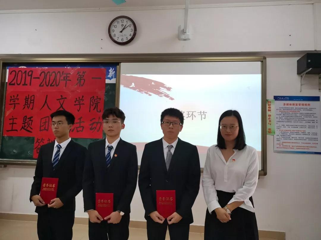 本次答辩会的评委有:人文学院党总支书记肖宾副院长,人文学院党总支副书记黄玫老师,人文学院学生党支部书记、团委书记兼学生会指导老师王欣然老师,人文学院辅导员谢俊芳老师,尹音娜老师,张静老师和宁梦飞老师,人文学院团委第二副书记梁瑞欣师姐,人文学院团委办公室主任魏伟棋师兄,人文学院团委组织部部长陈宗琴师姐。