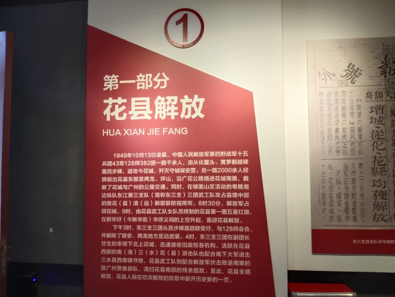 花县人民政府旧址位于花山镇洛场村,展览分为花县解放、建立政权、社会改造、社会发展、大事记要五部分内容。通过1万多字的文字说明、100多张照片及一批实物史料,详实反映了解放后花县县委、县政府带领花县人民进行革命和建设的历史。