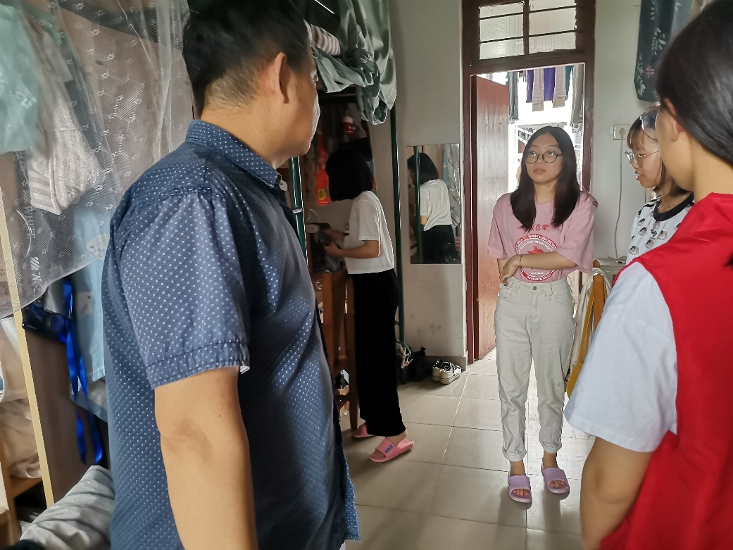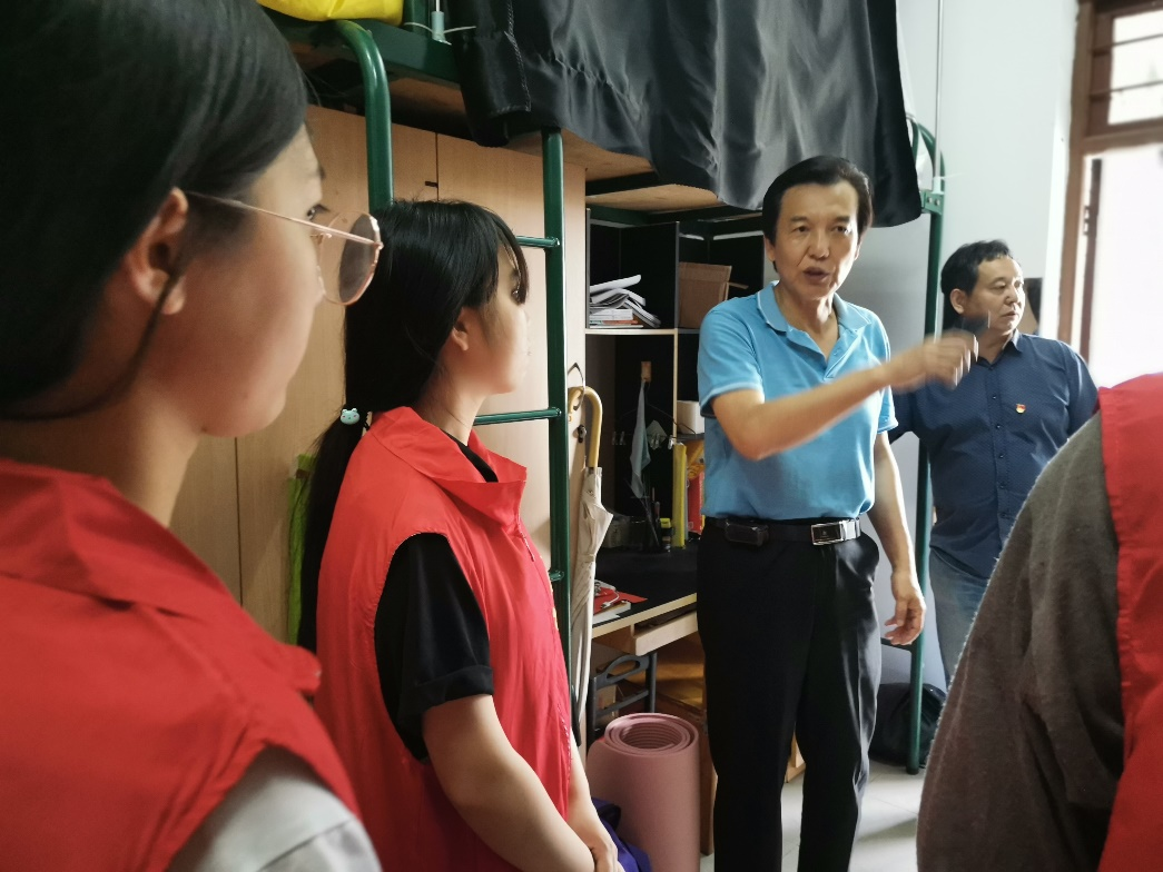 走访期间,老师们与学生积极交谈,关心同学们的生活。其中,肖宾书记提出宿舍环境卫生直接影响学生学习生活态度,对学生宿舍的卫生问题提出要求,大学生宿舍应当做到干净、整洁,桌面需时常整理,以此体现大学生的精神风貌。